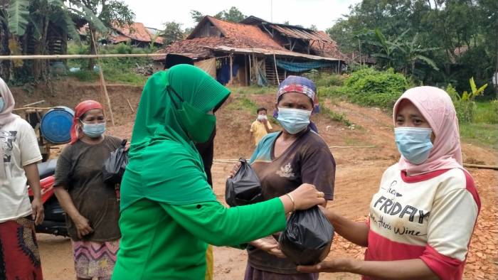 Di rumah Sekdes Dsn Gubuk Desa Tlambah Kec Karang Penang langsung ke home industri genteng memberikan masker dan sembako kepada pekerja genteng secara simbolis.(12/03/21)