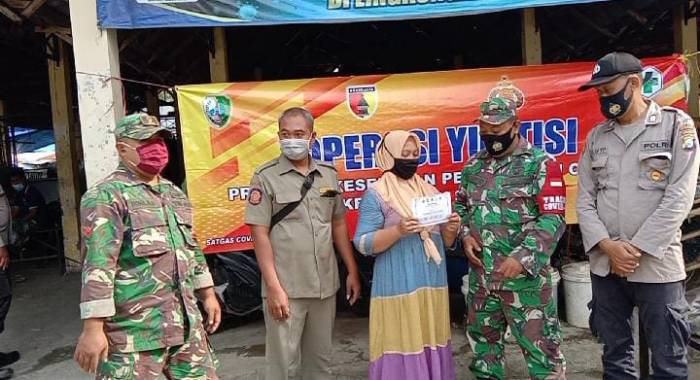 Sampang – Personil yang terlibat dalam Operasi Yustisi di Kabupaten Sampang yang terdiri dari Personil Kodim 0828/Sampang, Polres Sampang, Satpol PP dan melakukan serangkaian kegiatan pemeriksaan penggunaan masker ditengah masyarakat seputaran pasar.