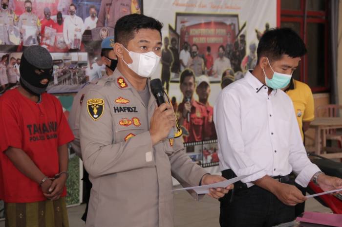 “Polres Sampang hari ini melaksanakan konferensi pers perkara tindak pidana pencurian dengan pemberatan (Curanmor) yang terjadi pada rabu tanggal 26 Mei 2021 sampai hari jum’at 28 Mei 2021” terang Kapolres Sampang AKBP Abdul Hafidz S.IK, M.Si.