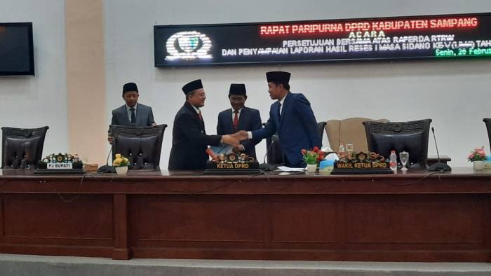 Berdasarkan hasil Rapat Finalisasi Rancangan Peraturan Daerah Tentang Rencana Tata Ruang dan Wilayah Kabupaten Sampang Tahun 2024-2044 antara Pimpinan DPRD Kabupaten Sampang, Bapemperda DPRD Kabupaten Sampang, OPD teknis leading sector dan Tim Raperda didapat kesimpulan bahwa :