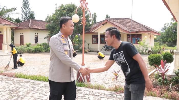 “Hari ini, kami menggelar kegiatan baksos berupa aksi bersih-bersih di Taman Makan Pahlawan (TMP) Tiuh Tohou, Kecamatan Menggala. Kegiatan ini merupakan salah satu rangkaian untuk menyambut Hari Bhayangkara ke-78 tahun 2024,” kata AKBP James.