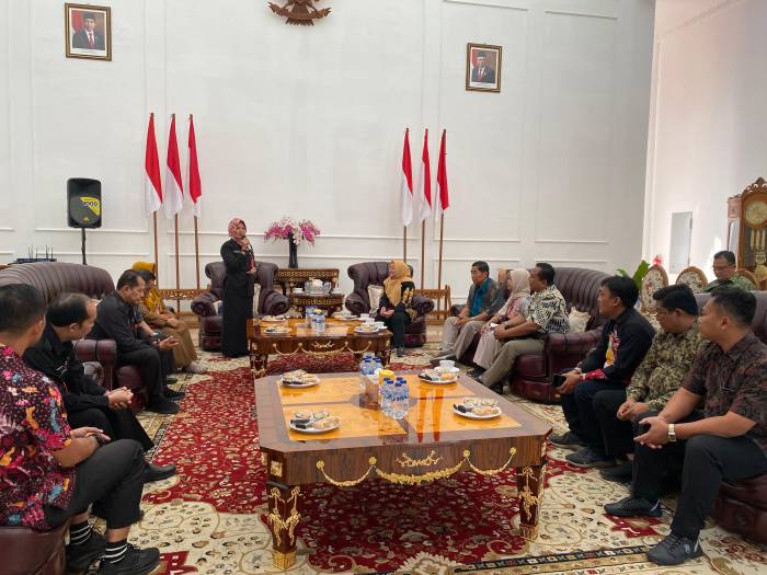 Bojonegoro, Kabar Tegas – Sekretaris Daerah Kabupaten Bojonegoro Nurul Azizah dan sejumlah pejabat Pemkab menyambut Tim Penilai Lapang Lomba BUM Desa Provinsi Jatim Tahun 2024 di Gedung Putih Pemkab Bojonegoro, Selasa (25/6/2024). Penyambutan tersebut juga diwarnai dengan penyerahan cinderamata kepada tim penilai.