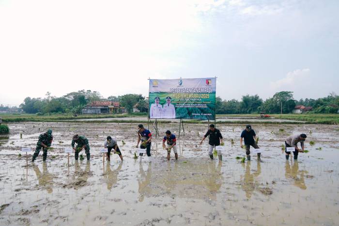 Oleh sebab itu Bupati Sampang H Slamet Junaidi, melakukan kegiatan penanaman bibit padi lahan di Desa Muktesareh Kecamatan Kedungdung sebagai bagian dari program ketahanan pangan tahun 2025. Sabtu (21/6/2025).
