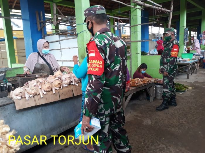 Penjual di Pasar Torjun Diingatkan Prokes Oleh TNI