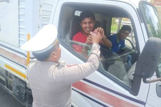 Satlantas, Polres Sampang Bagikan Rompi Dan Kopi Gratis Kepada Pengguna Jalan