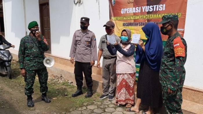 Koramil 0828/08 Sokobanah Peduli Bersama Gelar Operasi Yustisi Protokol Kesehatan Menuju Zona Hijau